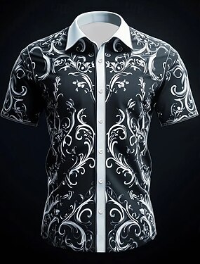 Муж. Животное Дракон 3D Рубашка Летняя рубашка Кнопка рубашка С короткими рукавами Темный готический стиль Праздники Уличная одежда Лето Весна Отложной 3D печать рубашки с воротником Черный