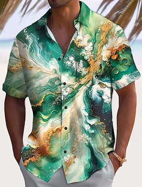 Муж. Геометрический принт Мрамор Абстрактное жидкое искусство Рубашка Летняя рубашка Кнопка рубашка С короткими рукавами Мода Повседневная на открытом воздухе Отпуск На каждый день Лето Весна Отложной