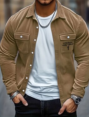 Муж. Печать коровы Вельветовая рубашка Куртка-рубашка Верхняя рубашка Длинный рукав Винтаж Ретро на открытом воздухе На каждый день Осень Зима Отложной Кнопка вниз Теплый Куртка с карманами-клапанами
