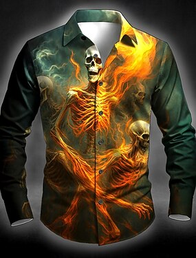 Мужские костюмы с черепами огненная рубашка пуговичная рубашка с длинным рукавом темный панк готический стиль на открытом воздухе отпуск лето весна отложной воротник 3D печать воротниковые рубашки