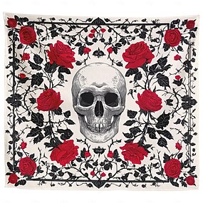 Готический гобелен с черепом и красными розами, эстетичный декор комнаты, настенное панно в стиле татуировки с изображением скелета, украшение для спальни в стиле панк, идеально подходит для дома,