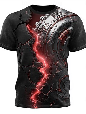 Муж. 3D-печати 3D Машина Футболка С короткими рукавами Футболка 3D печать Вырез под горло Рубашка преувеличены Оригинальный рисунок Для вечеринок Повседневные Праздники Черный 1 Черный 2