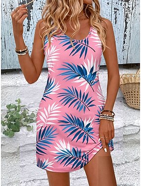 Жен. Мини-платье Сарафан Платье A-силуэта Летнее платье Отпуск На каждый день Свадьба Дом Для вечеринок Стандартный Цветочный принт Графика Лист Без рукавов U-образный вырез