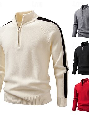 Муж. Вязаная ткань Пуловер Свитер Свитер-пуловер с застежкой-молнией на четверть Рельефный узор Вязать Обычные топы Трикотаж Облегающий крой Полотняное плетение Воротник-стойка