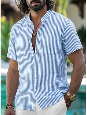 Муж. Полоски Футболка Рубашка Хенли С короткими рукавами Оригинальный рисунок Графический Ретро Повседневные Для улицы Лето Весна Синий Розовый Белый Зеленый Хенли Футболка Хенли