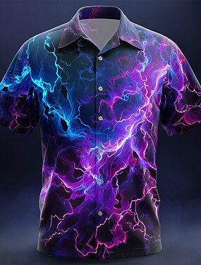 Муж. Молния Пламя Неоновое свечение Рубашка Кнопка рубашка С короткими рукавами Мода Повседневная Уличная одежда Отпуск Лето Весна Отложной 3D печать рубашки с воротником Черный 1 Черный