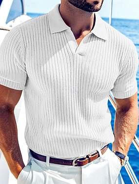 Муж. Вязаный топ в рубчик Рубашки-поло для гольфа Повседневные Офис Лацкан Ребристый воротник-поло С короткими рукавами Классический Современное Сплошной цвет Пуговицы Трикотаж Весна лето Все сезоны
