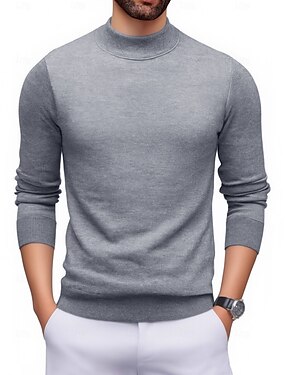 Муж. Вязаная ткань Пуловер Свитер Рельефный узор Вязать Обычные топы Трикотаж Облегающий крой Полотняное плетение Воротник-стойка Вязаная одежда Современный Повседневные На каждый день Одежда