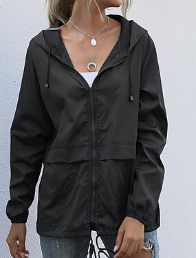 Жен. Куртка с капюшоном Удобный Молния Карман На каждый день Полотняное плетение Отпуск На каждый день На выход выходные Обычная Капюшон Стандартный Длинный рукав Верхняя одежда