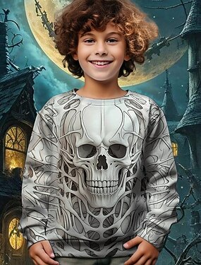 Хэллоуин Мальчики 3D Черепа Толстовка Длинный рукав Весна Осень Мода Классический Дети 4-12 лет Вырез под горло на открытом воздухе Повседневные Стандартный