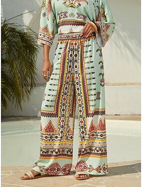 атласные брюки с геометрическим цветочным принтом и широкими штанинами для повседневного отдыха