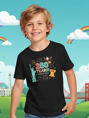 Хлопок 100% хлопок Дети Мальчики Синий Черный Белый Графика 250-летие Футболка Блуза Вырез под горло С короткими рукавами на открытом воздухе На каждый день Мода Уличный стиль Оригинальный рисунок