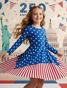 Девушки ' 3D Графика Полоски Звезды Платье Длинный рукав 3D печать Весна Осень Повседневные Отпуск Для вечеринок На каждый день Принцесса Красивый Дети 4-12 лет Повседневное платье Платье A-силуэта