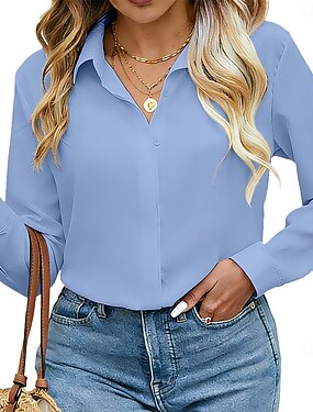 Жен. Рубашка Рубашка на пуговицах Повседневная рубашка Топы из шифона Сплошной цвет Полотняное плетение Элегантный стиль Отпуск Мода Длинный рукав Отложной Обычные топы Повседневные Праздники На выход