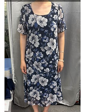 Жен. Платье средней длины Платье прямого кроя Элегантный стиль Повседневные Свадебный гость Стандартный Цветочный принт Графика С короткими рукавами Вырез под горло Темно синий