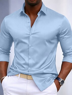 Муж. Рубашка Нежелезная рубашка Кнопка рубашка Полотняное плетение Повседневные Бизнес Синий Светло-розовый Светло-синий Черный Длинный рукав Отложной Все сезоны Одежда