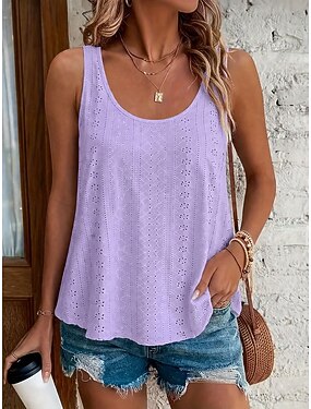 Жен. Безрукавка ушко Полотняное плетение Мода Стиль Классика Без рукавов U-образный вырез Обычные топы Повседневные На выход выходные Синий Белый Желтый Розовый Темно-зеленый Лето Весна