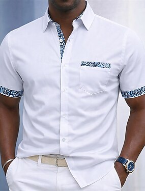 Муж. Повседневная рубашка Рубашка на открытом воздухе Офис Классический воротник Классика С короткими рукавами Мода Простой Праздник Геометрия Цветовые блоки Кнопка спереди Все сезоны Стандартный