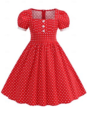 1950-е года Хепберн Ретро Полдень Платье A-Line Качели Платье Расклешенное платье Короткие рукава Горошек А-силуэт Квадратный вырез Маскарадный костюм Девочки Карнавал Маскарад Отпуск На каждый день