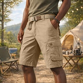 Муж. Брюки-карго Шорты-карго Шорты Повседневные шорты Пуговицы Несколько карманов Полотняное плетение Комфорт Дышащий Длина колена Повседневные на открытом воздухе Отпуск Мода Уличный стиль