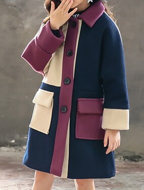 Девочки 3D Детская зимняя куртка Контрастных цветов Пальто Длинный рукав Весна Осень Активный Очаровательны Дети 3-12 лет Стандартный