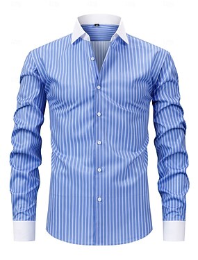 Муж. Рубашка Нежелезная рубашка Полосатой рубашке Кнопка рубашка Вертикальные полосы Свадьба на открытом воздухе Светло-синий Черный Белый Розовый Длинный рукав Воротничок Лето Весна Одежда