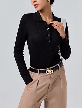 Женский однотонный трикотажный свитер-поло с длинным рукавом, минималистичный, из смеси шерсти, для работы, бизнеса, на каждый день, весна-осень