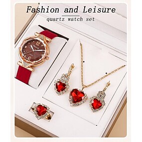 Набор женских часов 5 шт. Кожаный ремешок Женские часы Простой повседневный стиль Женские модные наручные часы и ювелирные изделия Подарок на День матери