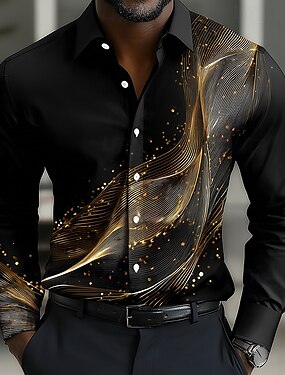 Муж. Геометрический принт Градиент Волны Рубашка Кнопка рубашка Повседневная рубашка Длинный рукав Мода Повседневная Отпуск Повседневные Уличная одежда Лето Весна Отложной 3D