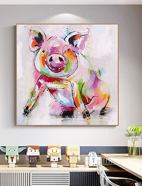 Картина маслом на холсте с изображением свиньи, сделанная вручную, настенное искусство, современная абстрактная картина для домашнего декора, свернутая в рулон, безрамная, нерастянутая.