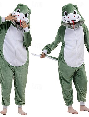 Пижамы кигуруми Необычные костюмы Костюм-комбинезон Змея Рептилия Косплей Костюм Капюшон Флис Взрослые Муж. Жен. Хэллоуин Карнавал Для вечеринок Выступление Домашняя одежда Одеваемся