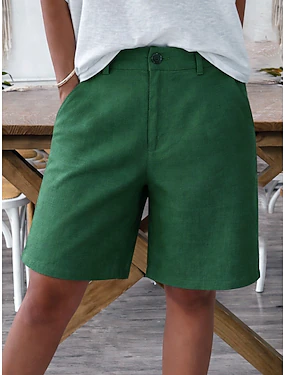 Жен. Шорты из хлопка и льна Чино Отпуск Классический На каждый день Короткие Завышенная Полотняное плетение Карман удобный Мягкий Удобный Слабоэластичная Повседневные на открытом воздухе Для улицы