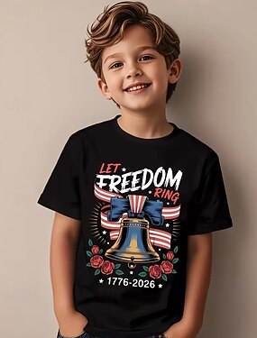 100% хлопок Дети Мальчики Черный Белый Графика Флаг США 250-летие Футболка Блуза Вырез под горло С короткими рукавами на открытом воздухе На каждый день Мода Уличный стиль Оригинальный рисунок Рисунок