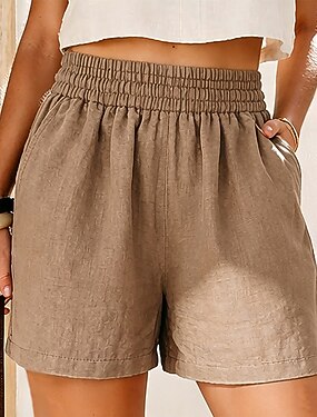 Жен. Шорты из хлопка и льна Шорты Летние шорты Пляжные шорты Отпуск Мода На каждый день Короткие Завышенная Сплошной цвет Полотняное плетение Карман Широкие Эластичный пояс Комфорт Мягкий Дышащий
