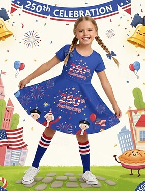Девушки ' 3D Графика Флаг Платье С короткими рукавами 3D печать Лето Весна Повседневные Отпуск Для вечеринок Симпатичные Стиль Классический На каждый день Дети 4-12 лет