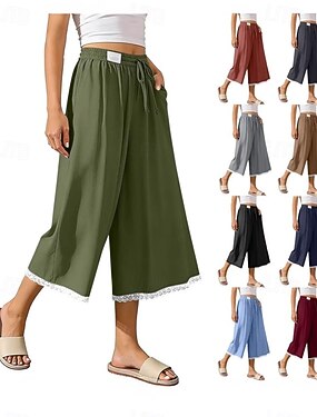 Жен. Широкие Чино Отпуск Классический До щиколотки Нормальная Полотняное плетение Комфорт Неэластичная Повседневные Синий Темно-серый Темно-русый Черный Лето Весна Свободное облегание