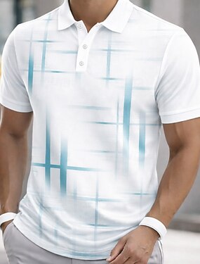 Муж. Абстракция геометрический Поло С короткими рукавами Футболки поло Лацкан Деловая одежда Бизнес Одежда для спорта и отдыха 3D печать Пуговицы Лето Небесно-голубой Белый Желтый