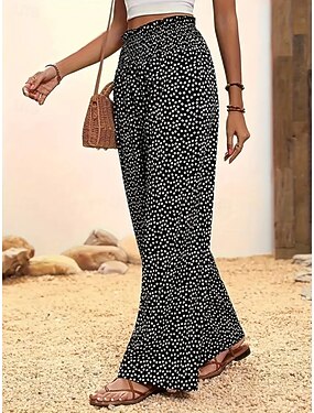 Жен. Широкие Штаны Повседневные брюки Прямой силуэт Отпуск Мода Уличный стиль Полная длина Завышенная Горошек Карман Эластичная талия Комфорт Удобный Неэластичная Эластичная