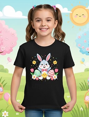 Футболка для девочек на пасхальную тематику с 3D-графическим изображением кролика, короткий рукав, 3D-принт, летняя/весенняя, спортивная/модная/уличная одежда, для детей 4-12 лет, круглый вырез,