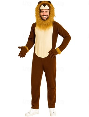 Пижамы кигуруми Необычные костюмы Костюм-комбинезон Животный принт Лев Мультяшная тематика Теплый Удобный Взрослые Универсальные Муж. и жен. Хэллоуин Карнавал Для вечеринок Выступление Домашняя одежда