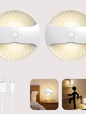2 шт. интеллектуального светильника с датчиками движения человека, зарядка через USB, простой светодиодный магнитный небольшой ночник, портативный светильник для шкафа, чувствительный к
