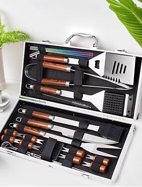 Набор для барбекю из нержавеющей стали и алюминия, набор принадлежностей для барбекю, походные инструменты для барбекю, набор из 24 предметов