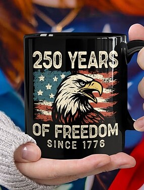 Патриотическая кружка к 250-летию США, керамическая кофейная кружка к полувековому юбилею, 1776-2026, подарок на День независимости 4 июля для мужчин и женщин, подходит для использования в микроволновой печи и посудомоечной машине.