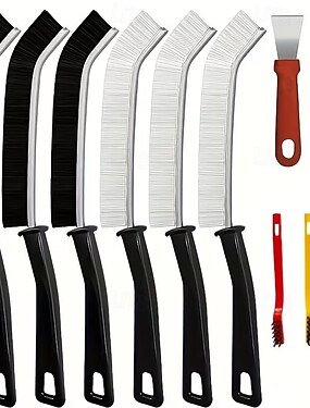 Набор из 11 многофункциональных щеток с жесткой щетиной для чистки углов — подходит для плитки, ванных комнат, кухонь и автомобильных щелей — многоразовые, не требуют питания, изготовлены из прочного