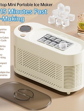 портативный мини-льдогенератор – быстрое приготовление льда за 10–15 минут, 8 кубиков за цикл, компактный и тихий, кристально чистый лед, легко чистить, идеально подходит для дома, офиса или вечеринок