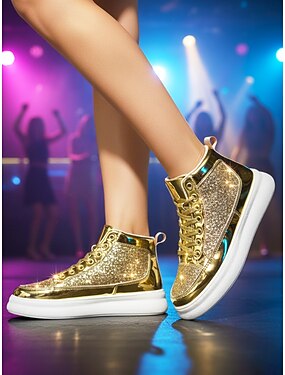 женские высокие кроссовки с золотыми блестками, блестящие металлические шнурки на каждый день для ночных вечеринок и клубной моды