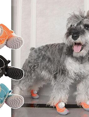 2 регулируемые по размеру собачьи ботинки с застежкой-кнопкой - водостойкие &Летние сапоги из сетчатого материала, нескользящая подошва для паркетных полов, дышащая защита лап, для мелких и средних