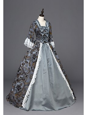 Винтаж Рококо Викторианский стиль Макси Платья Костюм для вечеринки Маскарад Нормальная Длинный с фонариком Принцесса Золушка Шекспир Кружева Бант Принцесса Квадратный вырез Маскарадный костюм