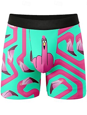 Муж. Мультипликация Фламинго Птица Эластичные боксерские трусы Плавки Боксерские шорты для плавания Веселая Повседневные Дом Пляжный отдых Эластичный пояс Влагоотводящий материал Дышащее нижнее белье