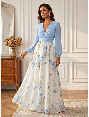 Жен. длинное платье платье макси Повседневное платье Шифоновые платья Цветочное платье Элегантный стиль Мода Романтика на открытом воздухе Праздники Свидание Стандартный Цветы Длинный рукав